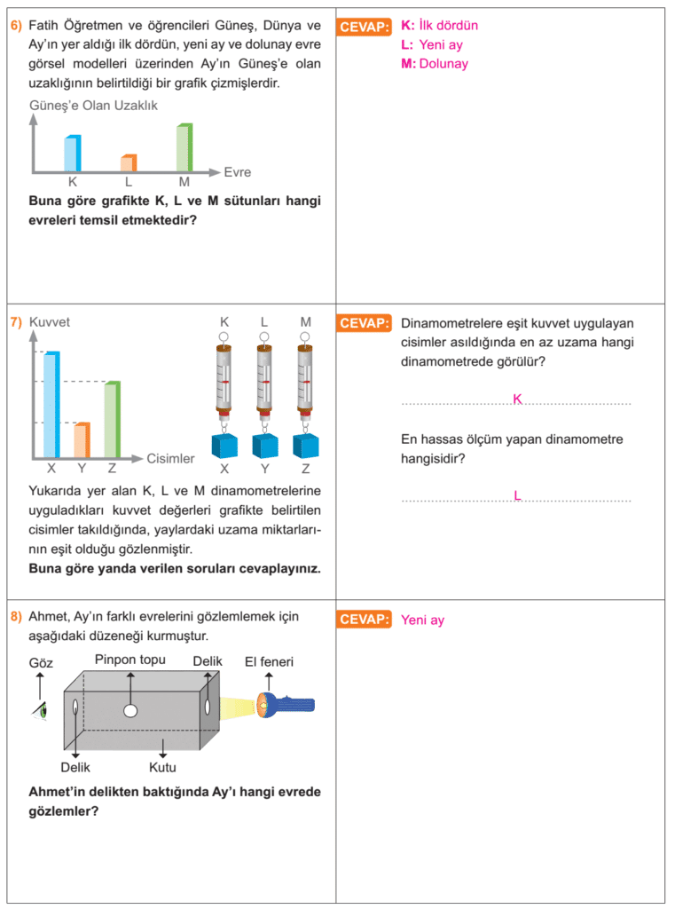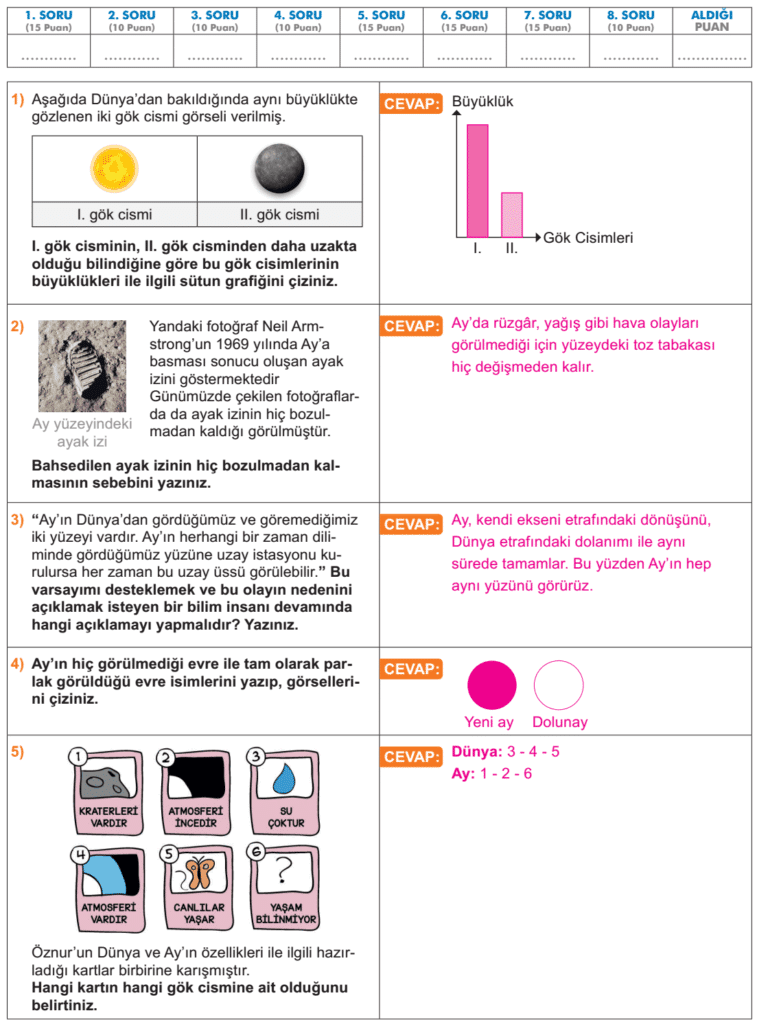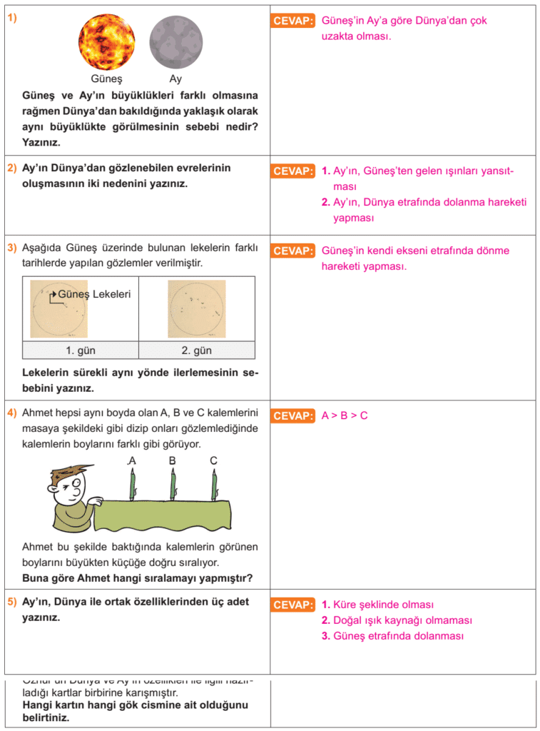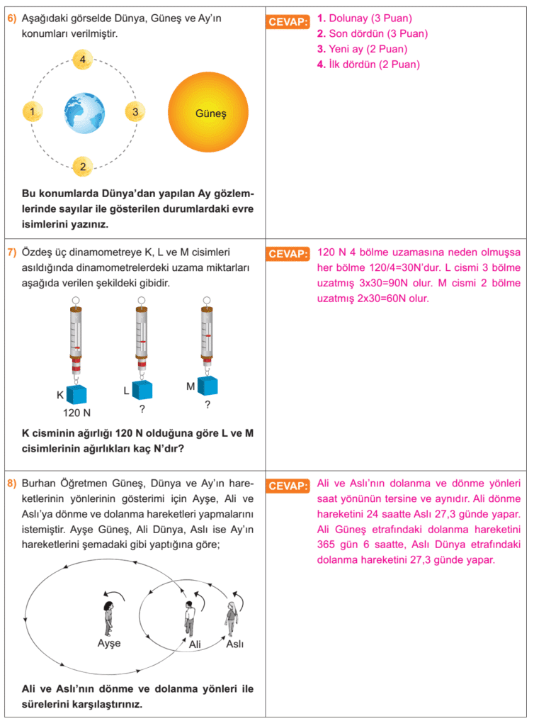 5. SINIF FEN YAZILI SINAV ÖRNEKLERİ